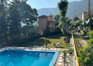 The Ganga River is just a 200-meter downhill trek away, and the swimming pool area offers a beautiful view of the river.